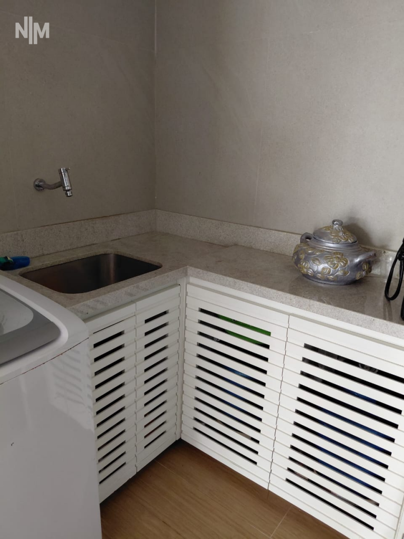 Village com 4/4 (02 suítes), mobiliado, atelier completo de costura, banheiro social, lavabo, cozinha, todos os cômodos com armário, área de serviço com armário, banheiros com blindex, varanda e garagem.